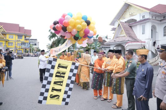 “Dengan mengucapkan bismillahirrahmanirrahim peserta pawai ta’aruf MTQ ke XVIII tingkat Kabupaten Rohil secara resmi kami lepas,” ucap Bupati.
