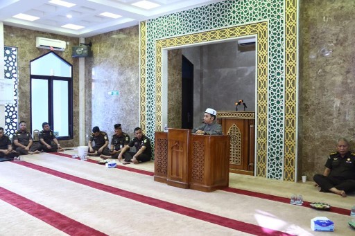 Kegiatan Pengajian Rutin Kejaksaan Tinggi Riau oleh Syaikh Maulana Husen Al Muqri Bin Ismail bertempat di Masjid Al-Mizan Kejaksaan Tinggi Riau mengikuti secara ketat protokol kesehatan (prokes).
