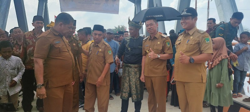 ROKAN HILIR- Pembangunan jembatan penyebarangan ke Kepenghuluan Air Hitam, Kecamatan Pujud dengan dana APBD sekitar Rp.33 Milyar telah diresmikan oleh Bupati Kabupaten Rokan Hilir,Afrizal Sintong, Selasa (18/07/2023) kemarin.