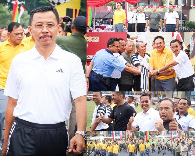 Kegiatan Olahraga Bersama TNI- Polri dan Forkopimda Provinsi Riau Dalam Rangka HUT Bhayangkara ke- 77 Tahun 2023 berjalan aman, tertib dan lancar serta menerapkan secara ketat protokol kesehatan (prokes), urai Kasi Penkum Kejati Riau, Bambang Heripurwanto SH.MH. (red)