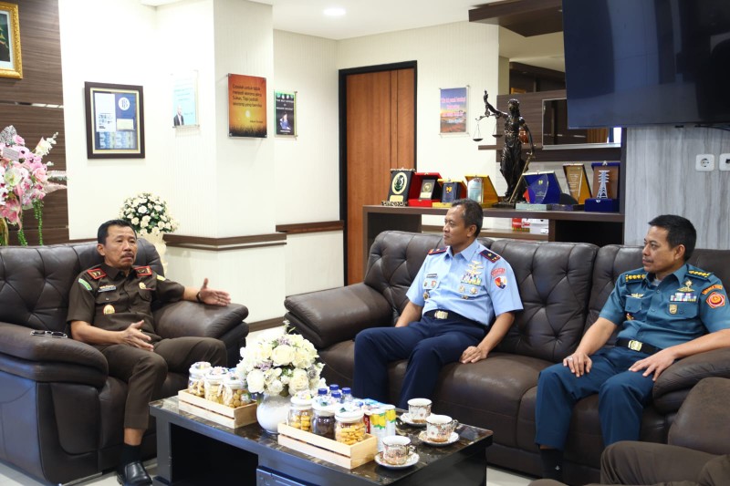 Kepala Kejaksaan Tinggi Riau Dr. Supardi menyambut baik kunjungan kerja silaturahmi Komandan Lanud Roesmin Nurjadin Marsma TNI Mohammad Nurdin di Kejaksaan Tinggi Riau