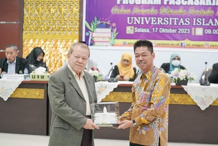Bupati Rohil Afrizal Sintong, S,IP, M,SI menjadi peserta pascasarjana dan mengikuti seluruh proses yudisium program pascasarjana ke 53 periode ke III di Universitas Islam Riau, Di Aula Gedung Rektorat Selasa (17/10/2023).