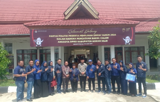 Pantauan BincangRiau.com di kantor KPUD Rohil, usai melakukan konsultasi rombongan DPD NasDem Rohil berfoto bersama di depan kantor KPUD Rohil. (Red)